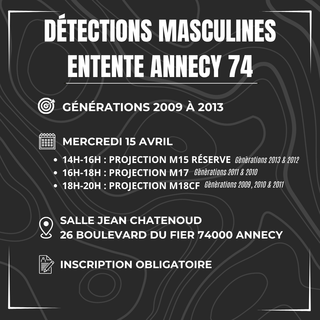 👉 L’Entente Annecy 74 organise ses détections pour les générations 2009 à 2013 à Annecy !